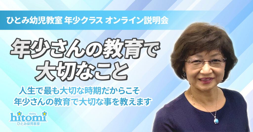 | ・年少さんの教育で大切なこと〜人生で最も大切な時期だからこそ、年少さんの教育で大切な事を教えます〜 ・ひとみ幼児教室の年少クラスの内容 ・質疑応答質問に沢山応対しながらお話しします |